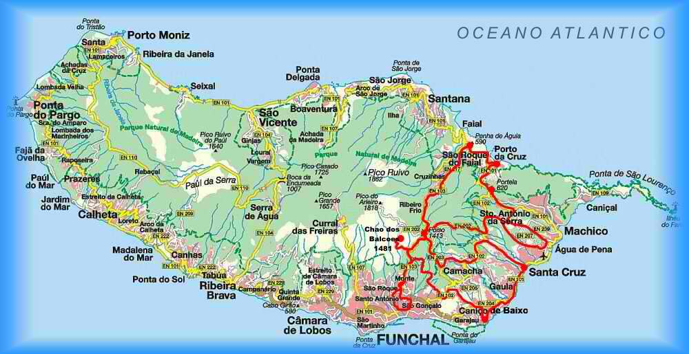 Montag: Wir beginnen unser heutige zweite geführte Tour 9:30 Uhr. Wir fahren zunächst auf der alten Küstenstraße nach Santa Cruz danach verlassen wir sie um links eine kleine sehr steile Straße nach Joao FerinoAguas Mansas und weiter dem Paso Poiso zu erreichen.