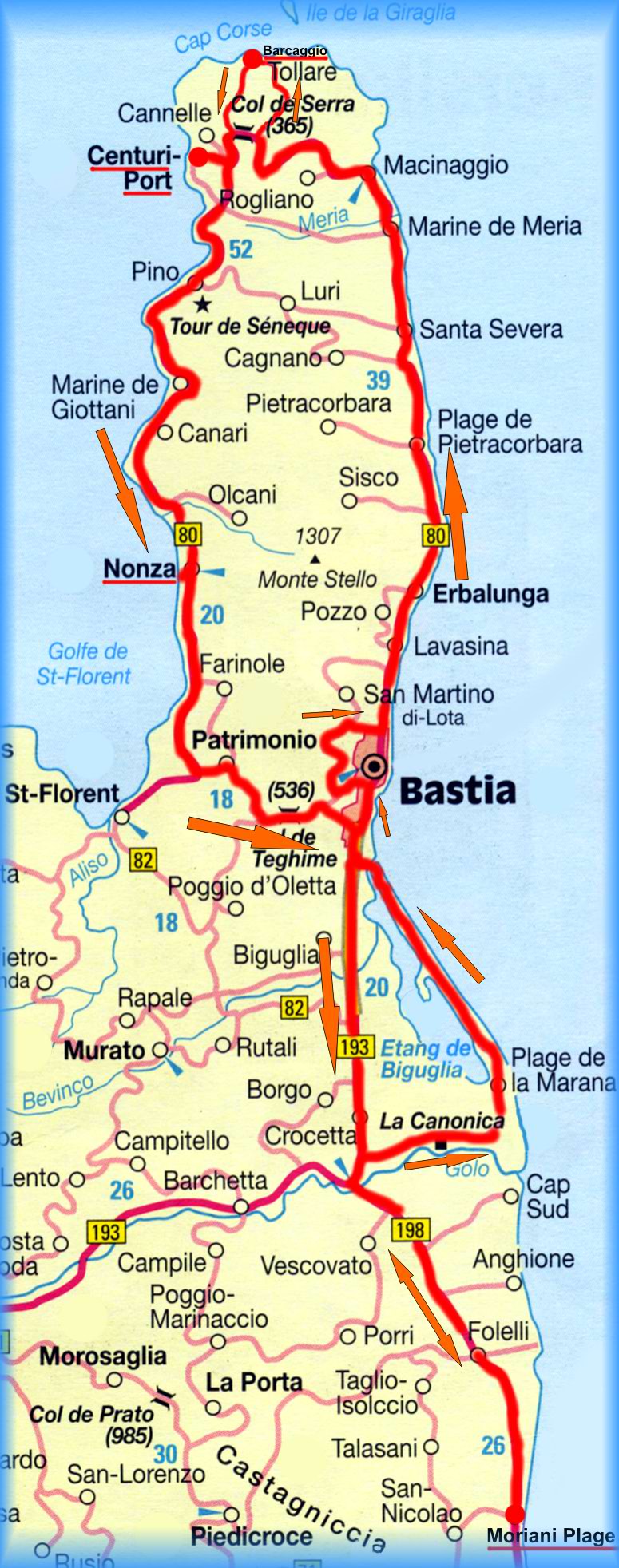 Mittwoch: 09:00 Uhr Heute ist es angenehm kühl 22 C°, genau das richtige Wetter für die Cap Corse Tour. Wir steuern zunächst wieder über la Canonica in Richtung Bastia. Diesmal werden wir Bastia "westlich" umfahren, über die D264 und D64. Der Tour de Losse bei Santa Severa , der "Wachturm" an der Ostküste des Cap's. Die Tour entlang der Küste ist angenehm zu fahren, gute Straßen und immer leicht kurvig. |