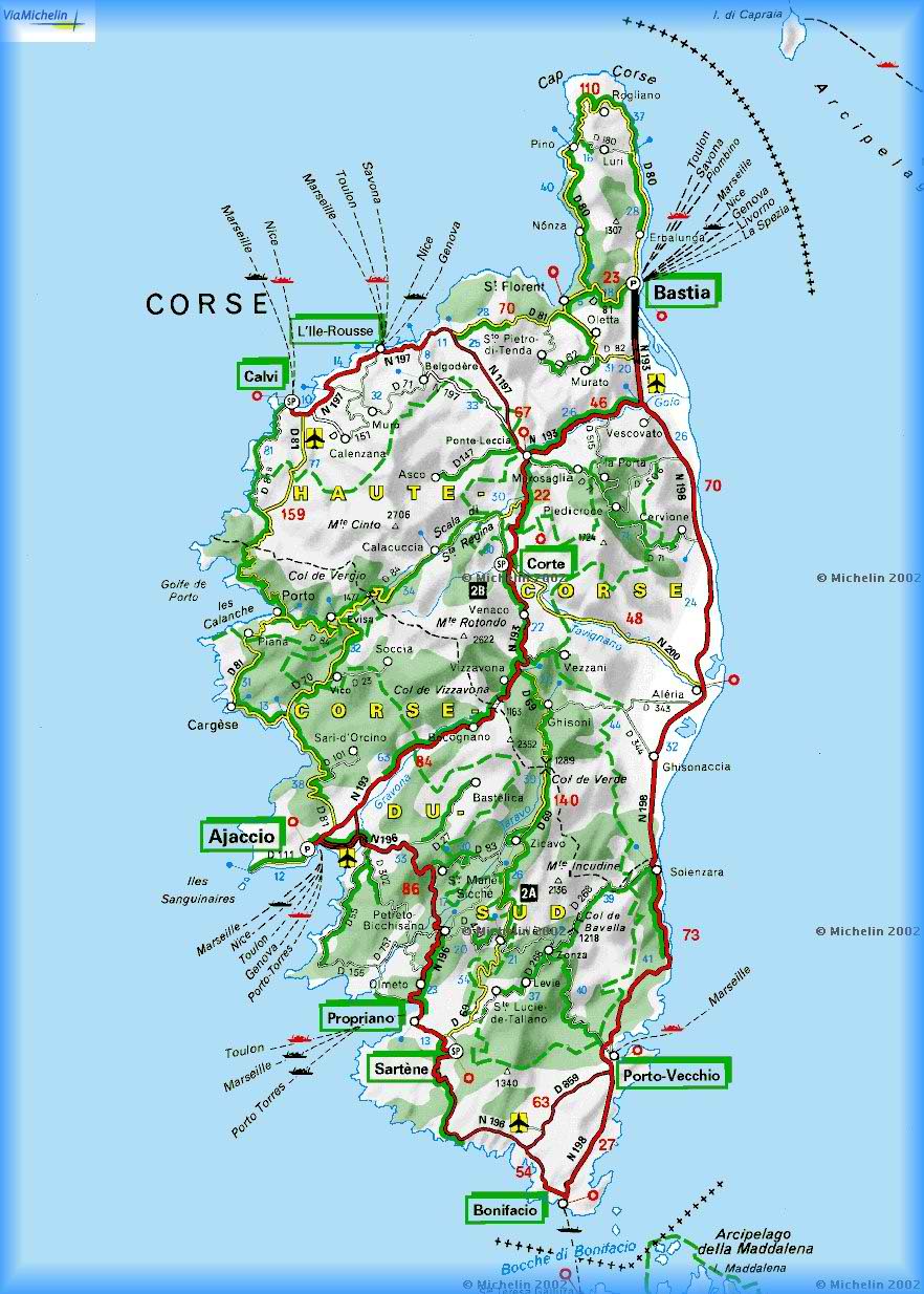 Karte zu unseren Motorradtouren auf Korsika.