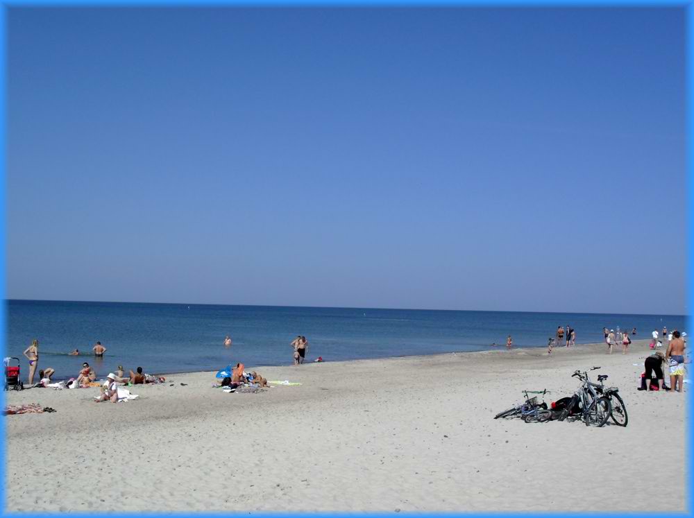 Nach dem Besuch von Nida, erlauben wir uns eine Auszeit am schönen Strand der Nehrung. Hier verbringen wir fast drei Stunden mit baden, schwimmen, sonnen und faulenzen. Bei hochsommerlichen Wetter war die Wassertemperatur mit ca.20°C recht akzeptabel. |