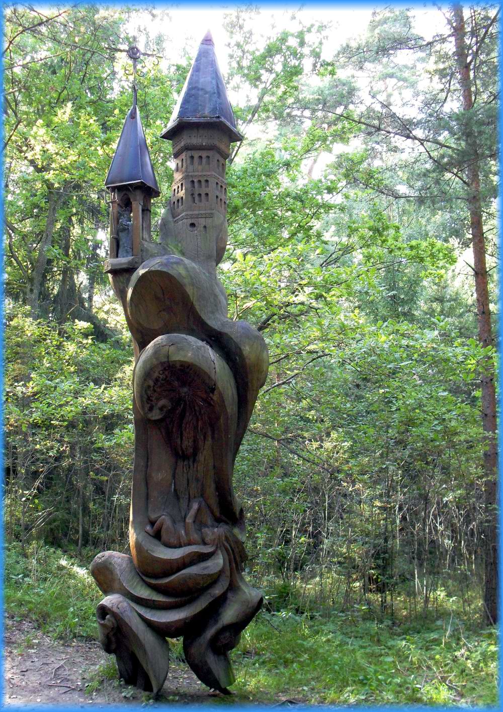 Zwischen und auf den Holzskulpturen erscheinen uns immer wieder merkwürdige Gestalten ... |