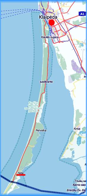 Die Kurische Nehrung ist ein knapp 100 km langer Landstreifen der das Kurische Haff von der Ostsee abtrennt. Die Kurische Nehrung ist zum einen Teil litauisch und zum anderen russisch . Auf der litauischen Seite befindet sich der Nationalpark Kuršių Nerija . |
