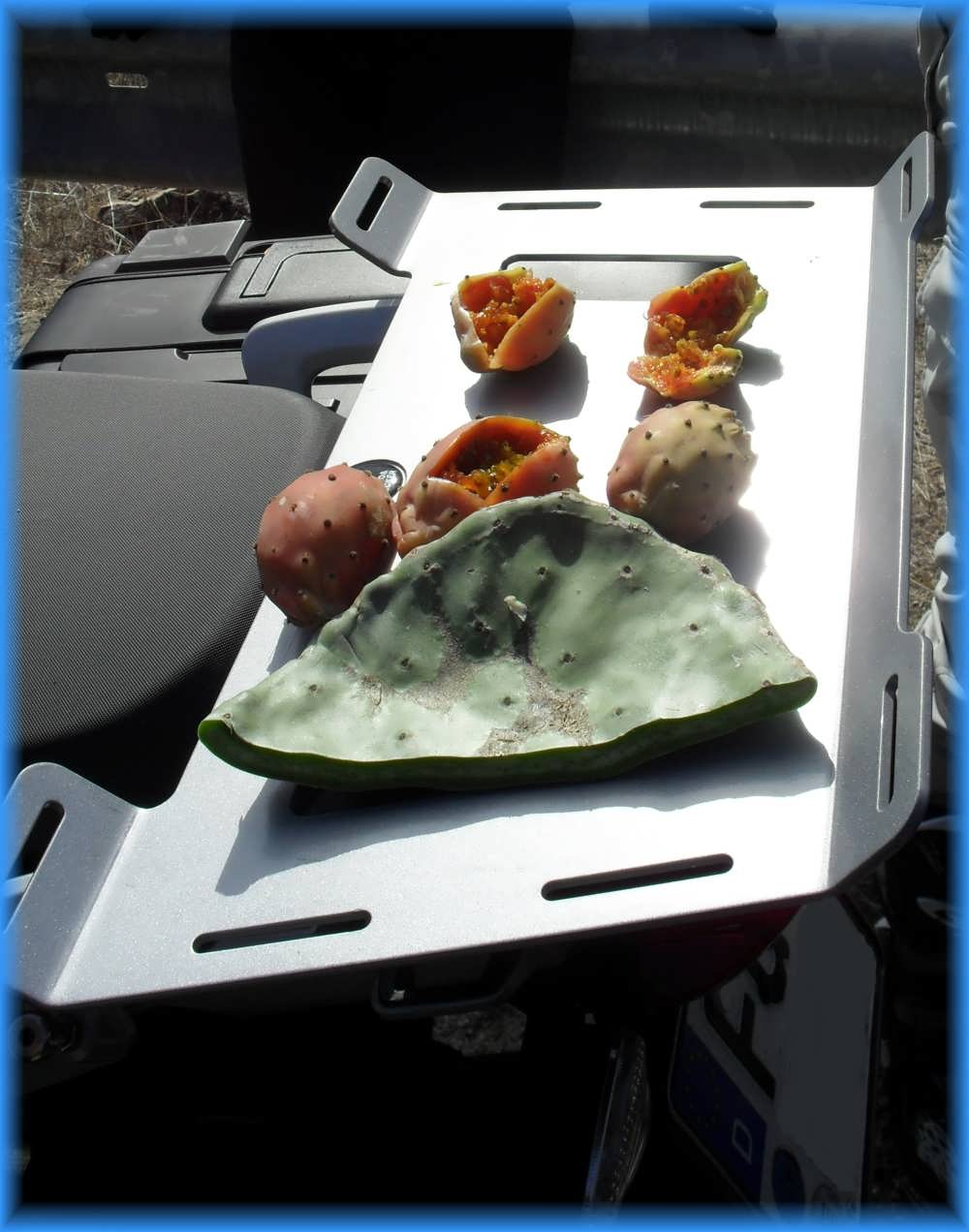 ... vorbei an Feigenkakteen mit ihren Früchten ...