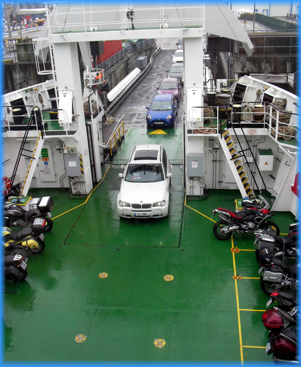 Wir fahren auf die Fähre auf und gurten die Motorräder selbst an, die Gurte werden gestellt. Die Fahrzeit der Fähre zur Isle of Skye wird ca. 45min betragen, genug Zeit für einen Kaffee. | |||