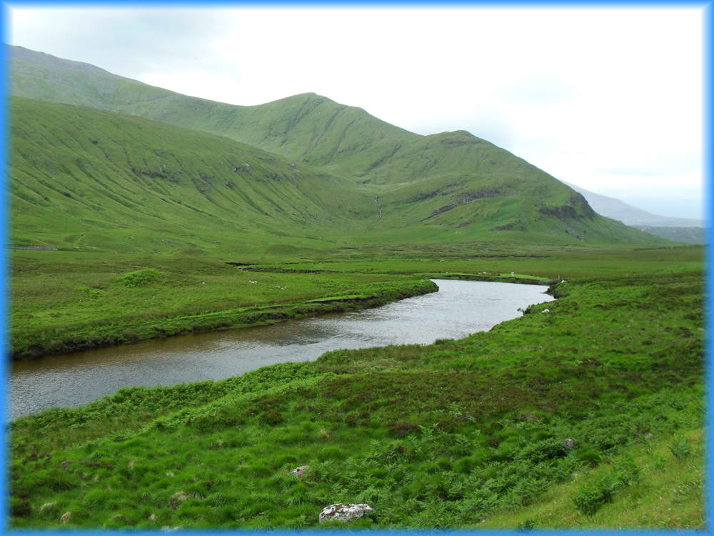 Wir fahren weiter durch die Highlands, auf einer einspurigen Straße. |