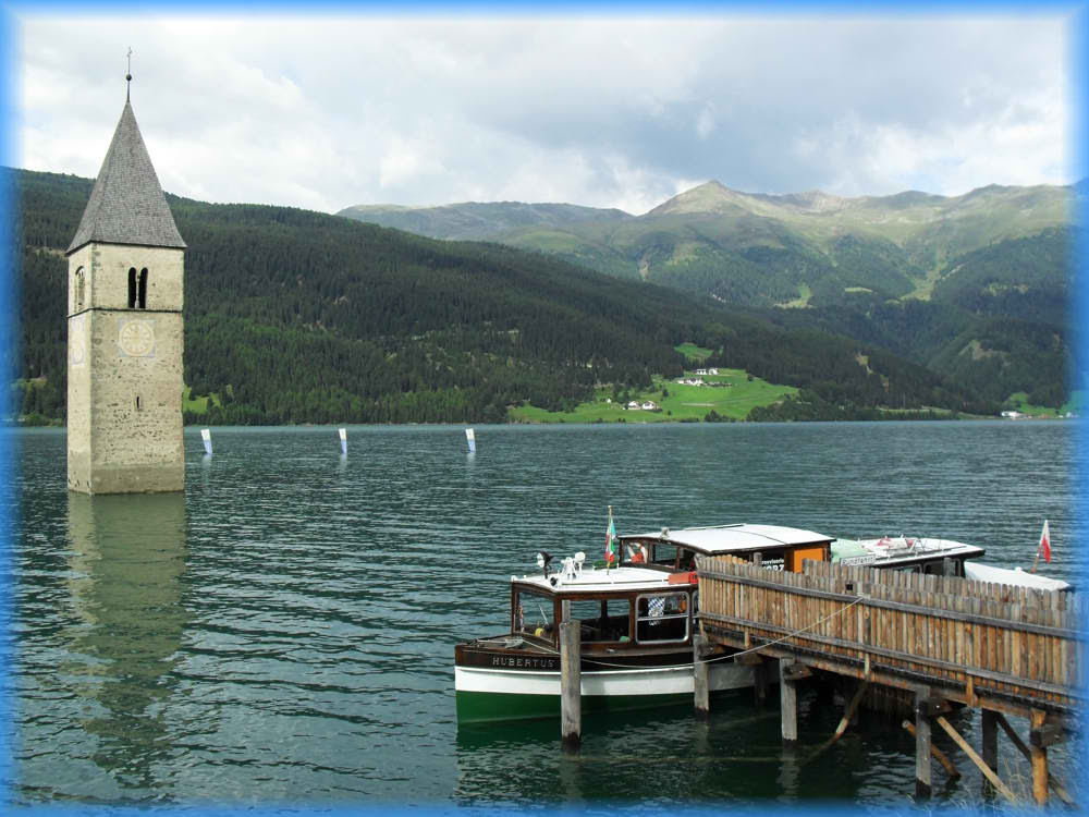 Wir werden jetzt den Reschensee umrunden ... | |||