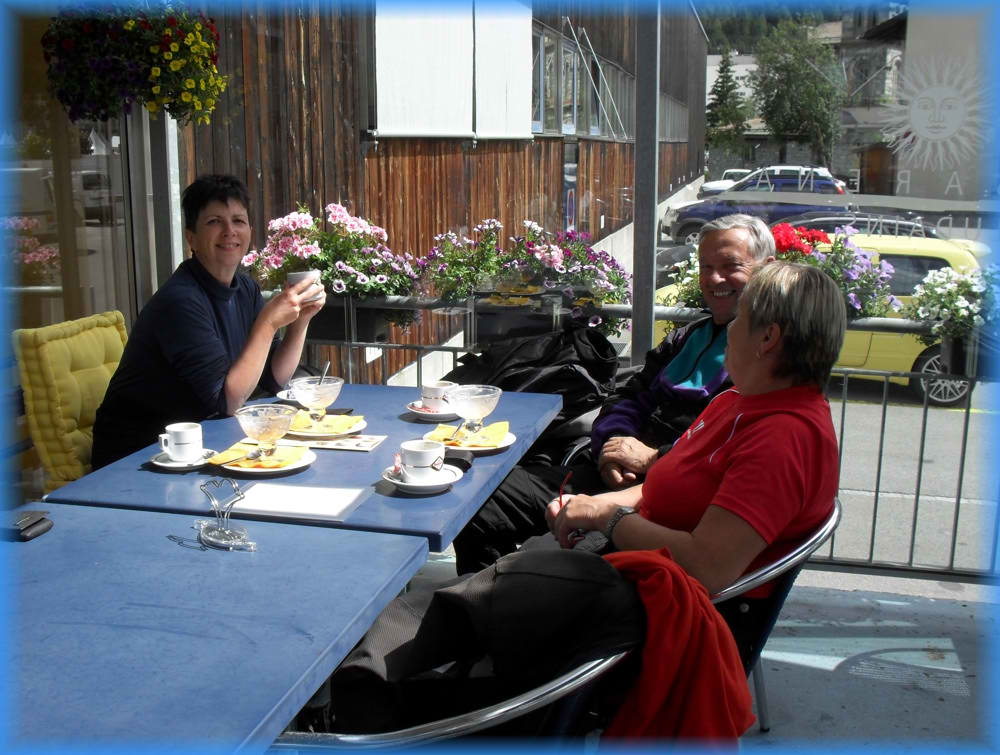 ... das Cafe an der "Eisarena Ludains" (Via Ludains, 5, 7500 Sankt Moritz)