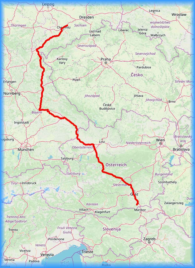 Start zur Anfahrt in die Südsteiermark ist 06:30 Uhr ab Frankenberg. 🕡 Unser erstes Ziel ist Gamlitz, hier haben wir schon einmal auf der Rückfahrt von unserer Slowenien-Tour 2001 eine Zwischenübernachtung gemacht. |