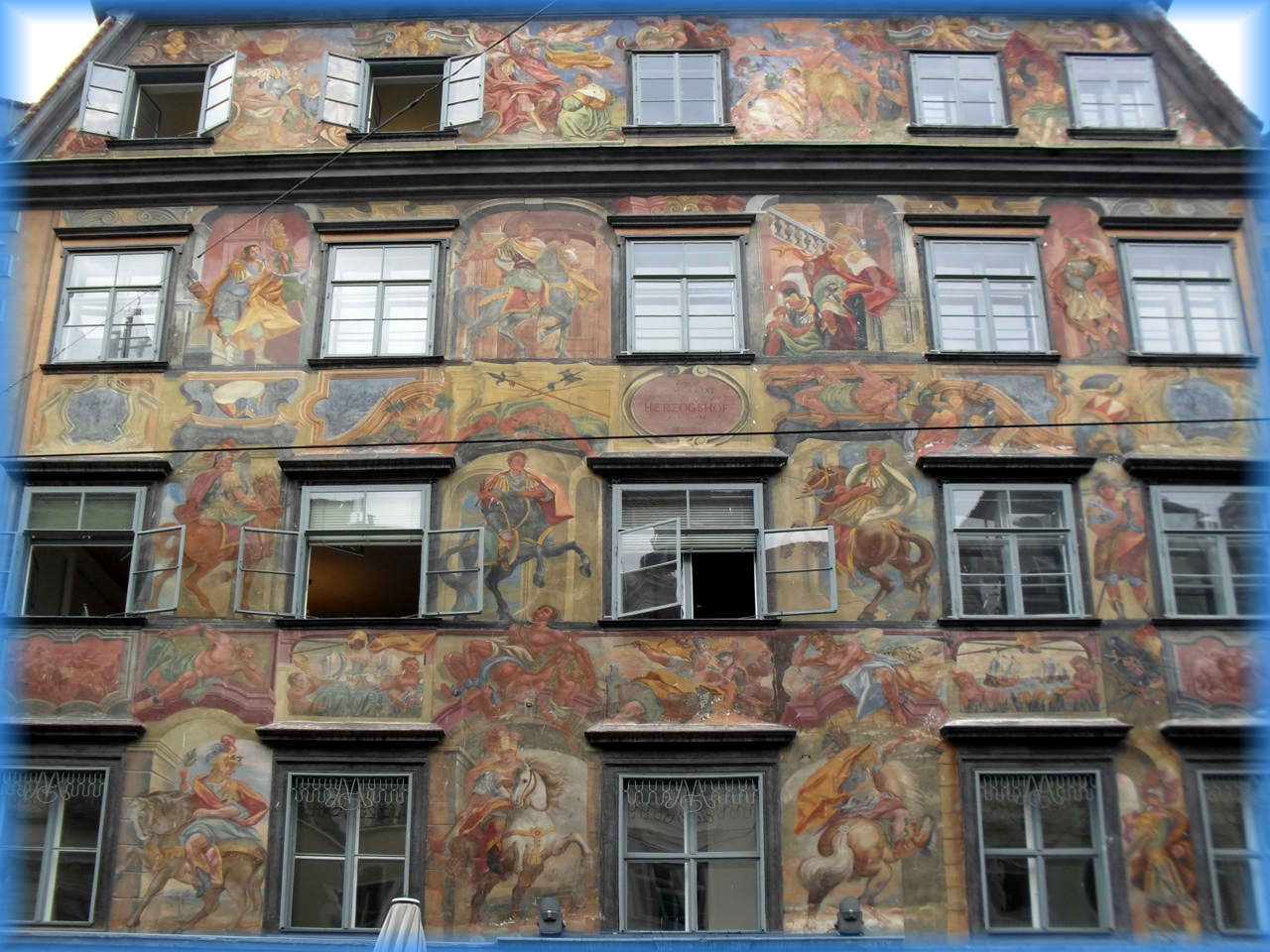 Der Herzogshof (Gemaltes Haus) ist ein Haus in der Grazer Herrengasse, dessen Vorderansicht bemalt ist. | |||