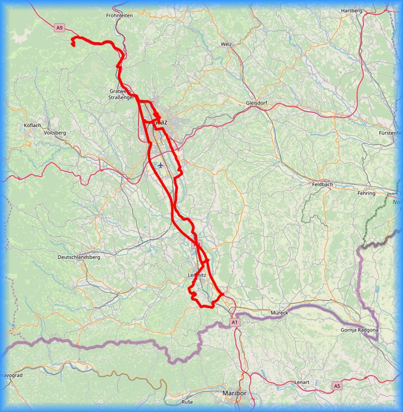 Ankunft in Gamlitz gegen 18:00 Uhr 🕕 Länge der Tour ca. 182 km |