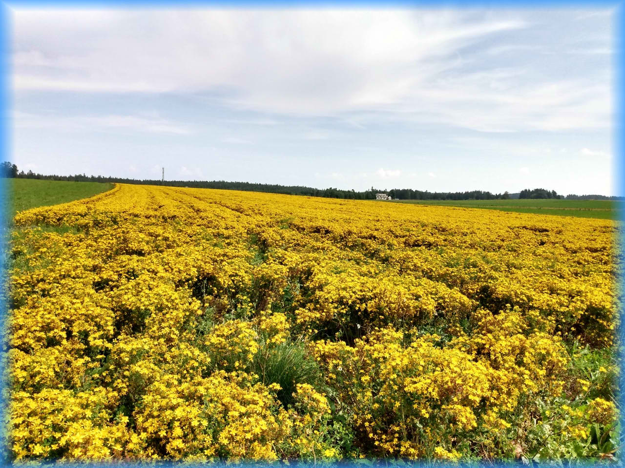 Vorbei an diesen gelbblühenden Feld, vielleicht war es Johanniskraut (?), ab hier nach Süden bis Ottenschlag mit seinen Schloss Ottenschlag und von hier östlich bis Kottes . |