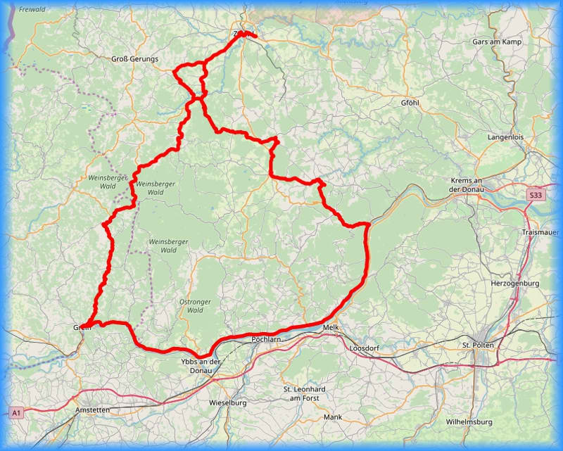 Ankunft in Zwettl gegen 17:30 Uhr 🕠 Länge der Tour ca. 190 km |