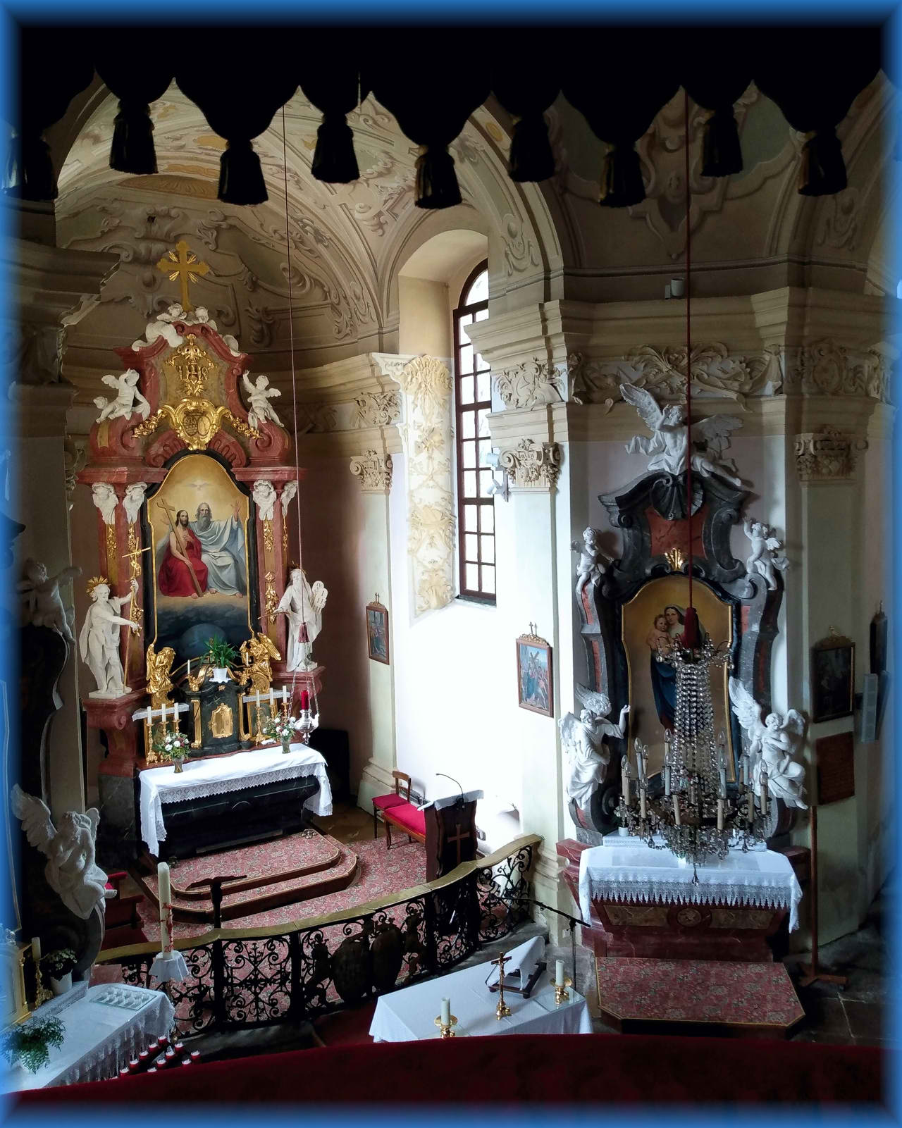 In der Pfarrkirche ist ein Deckenfresko zu sehen das die "Anbetung der Heiligen Dreifaltigkeit" zeigt. | |||