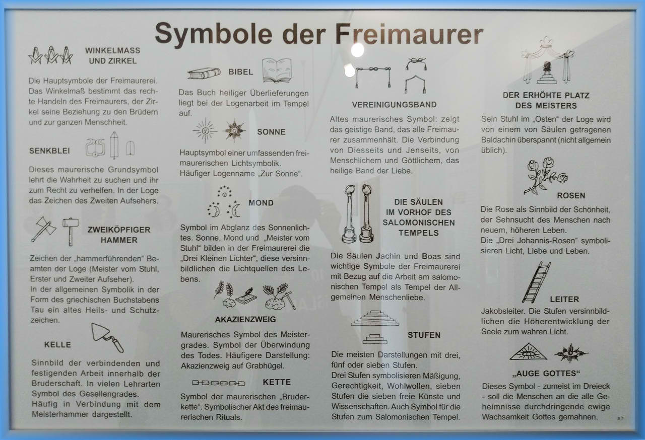 Zitat vom FreimaurermuseumMan zeigt allerlei seltsame Objekte, von denen viele schön, formal und kunsthandwerklich interessant , historisch bedeutsam sein mögen, die das eigentliche Phänomen aber nicht erklären. ... |