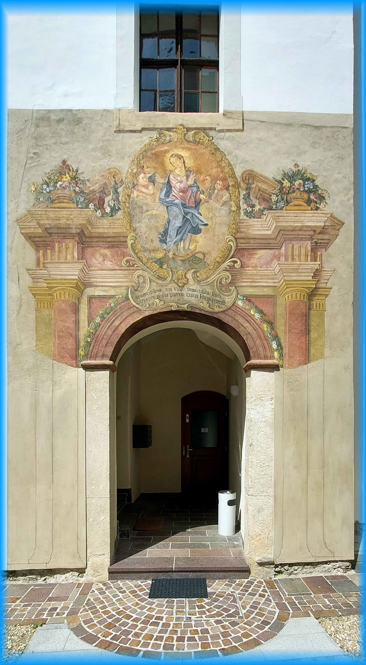 Die markante "Frauen Pestsäule" im Eingangsbereich wurde errichtet durch Probst Webersberg. | |||
