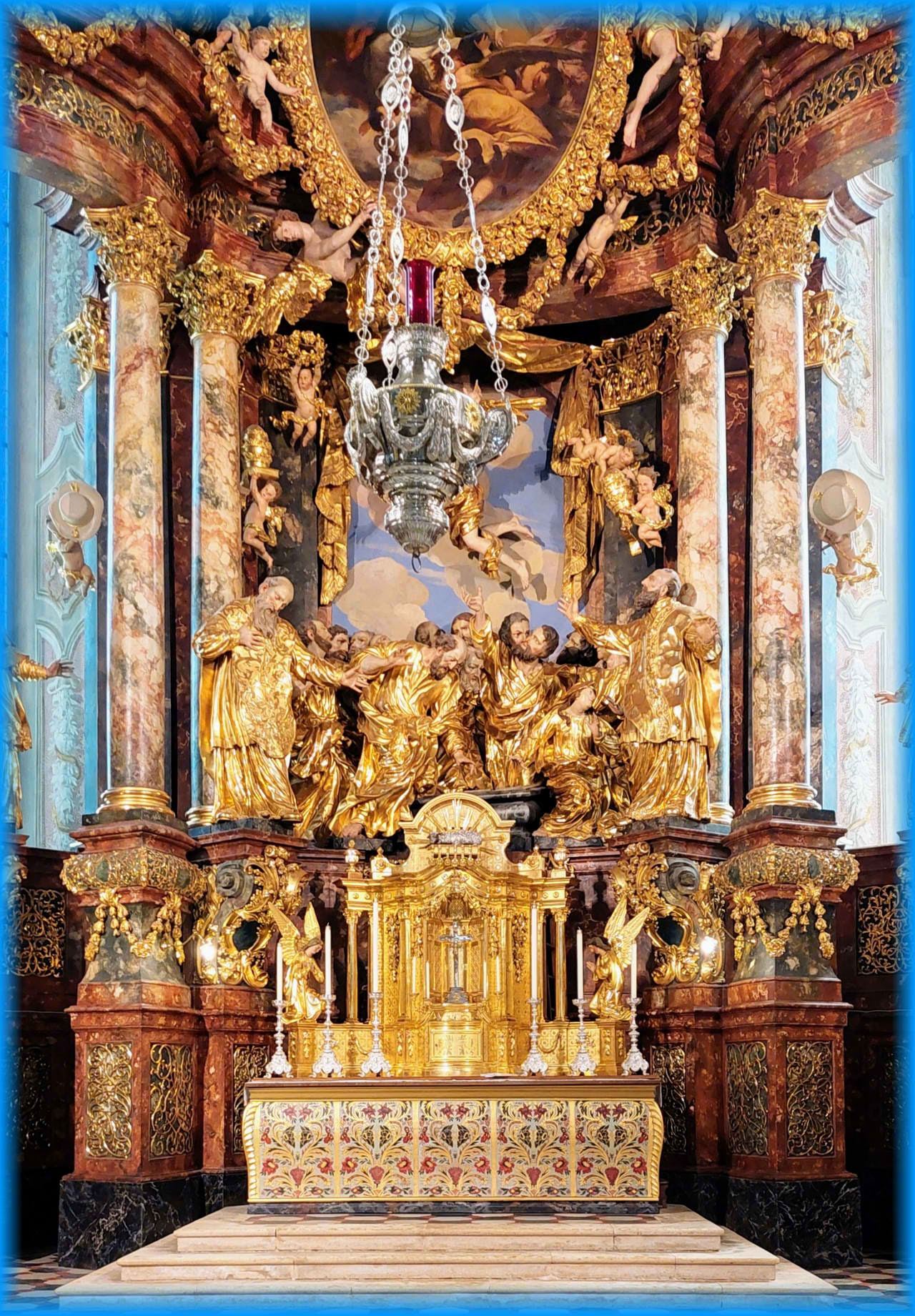 ... den prächtigen Hochaltar der Anfang des 17 Jh. nach Plänen von Matthias Steinl errichtete wurde ... | |||