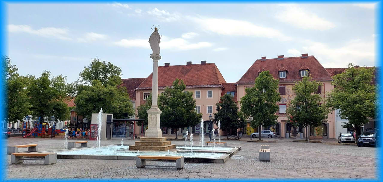 Unser erstes Ziel hier in Fürstenfeld ist der Hauptplatz mit der markanten Mariensäule aus den Jahre 1668 . Diese sollte Schutz vor den Erbfeind, den Türken, bieten. Und 1664 dankte man hier der „Glorwirdigisten Himelskönigin der Mvttr Gotts bereits für die Abwendvng der grosen Tirckengefar“. | |||