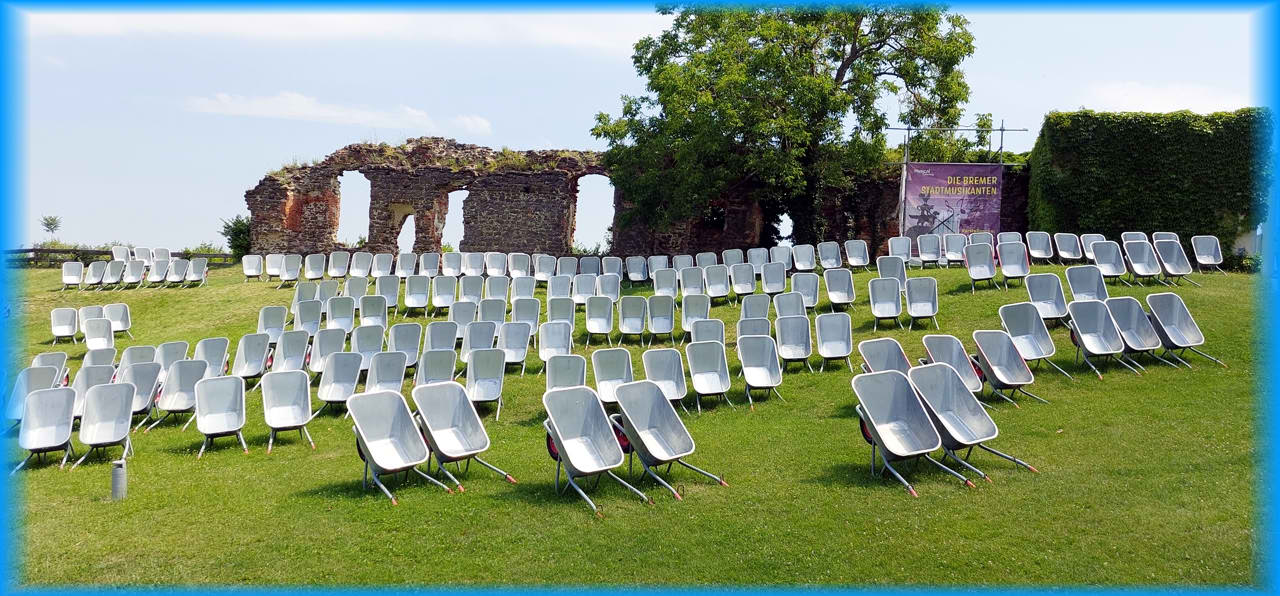 Für das FAMILIENMUSICAL "Die Bremer Stadtmusikanten" hat man sich hier originelle Sitzgelegenheiten bereitgestellt. | |||