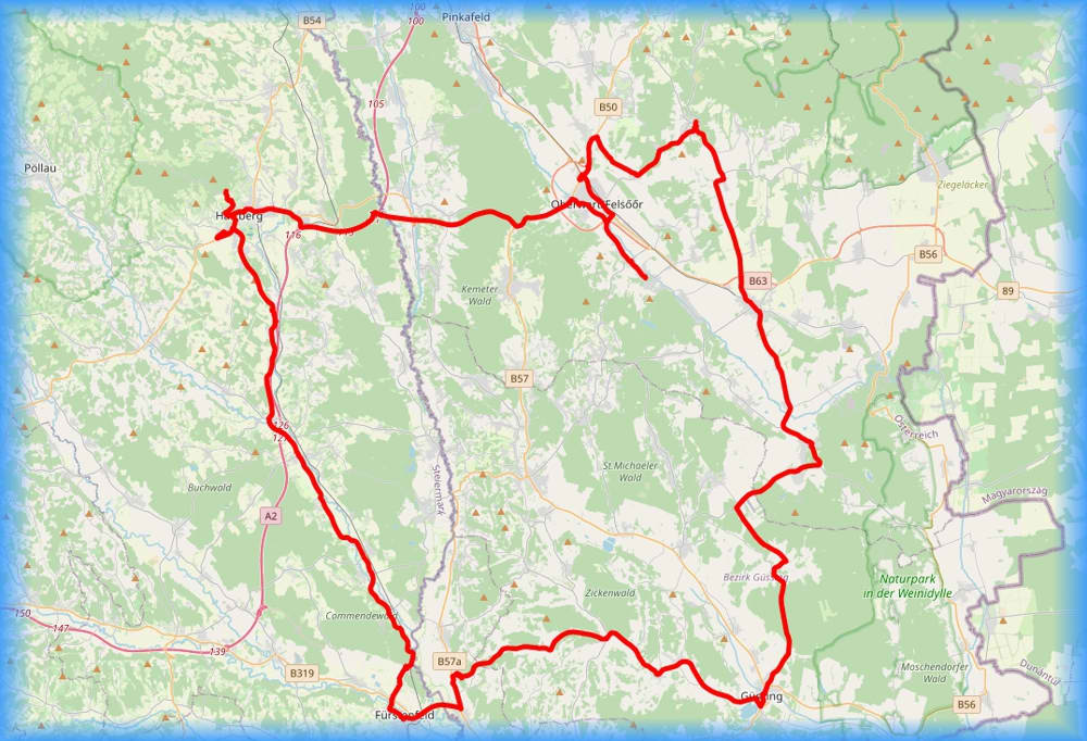 Wir beginnen unsere heutige Tour gegen 09:45 Uhr und fahren zunächst immer Richtung Süden , nach 35 km kommen wir dann in der Thermenhauptstadt Fürstenfels um 10:45 Uhr an. Diese liegt an der Lafnitz im südöstlichen Teil der Steiermark .
