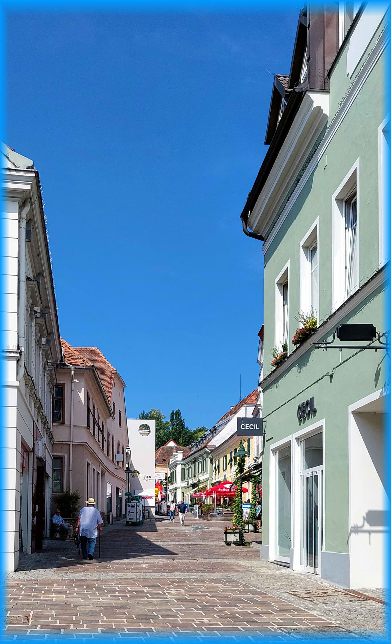 Bei sonnigen Wetter geht es nun bergabwärts in die Kleinstadt Hartberg. Im Mittelalter war Hartberg die erste Hauptstadt der steirischen Mark, ... immerhin.
