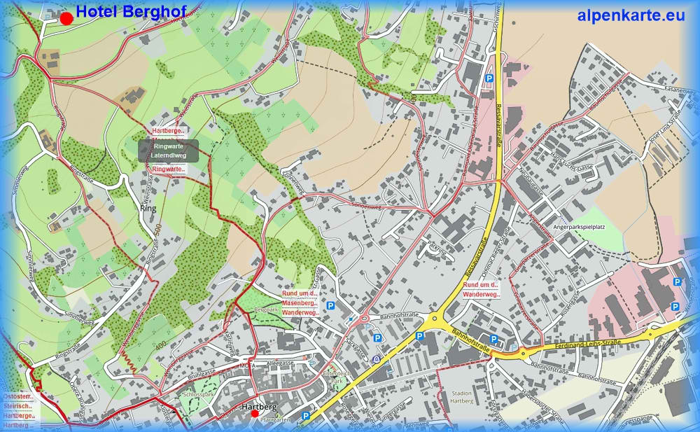Weitere Höhepunkte hier in Hartberg sind noch das Rathaus, die Pfarrkirche St.Martin, das Schloss Hartberg (Schloss Paar), das Steinpeißhaus mit den Stadtmuseum und die Ringwarte mit Aussichtsturm am Ringkogel welcher oberhalb von Schreiners Berghof zu finden ist.