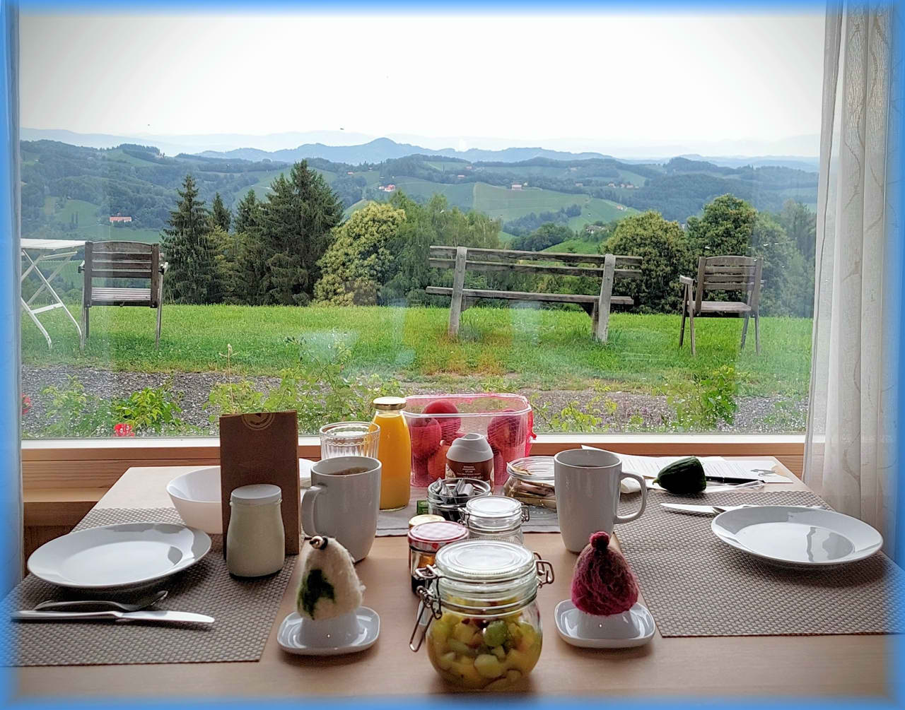 In dieser Nacht hat es geregnet 🌧 und es war sehr windig, deswegen gibt es heute das Frühstück drinnen . | |||