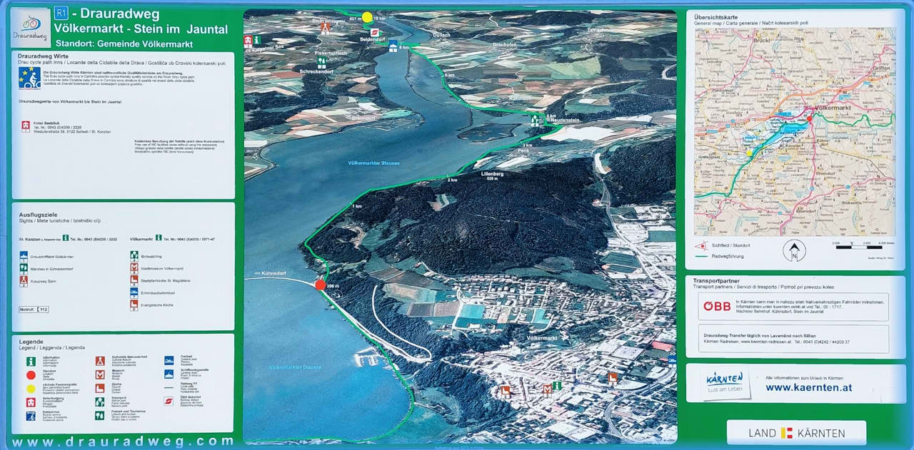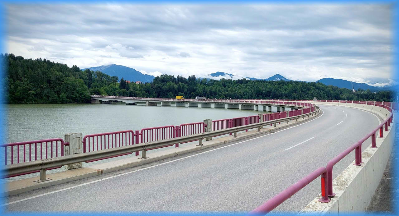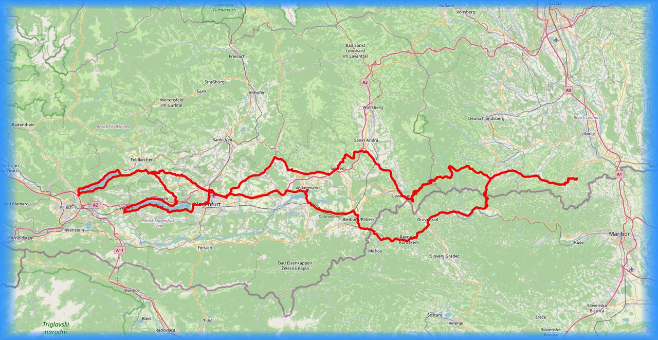 Jetzt fahren wir südlich bis Radlje Ob Dravi und wieder westlich im Tal der Drau [Drava] entlang. Das ist ein Nebenfluss der Donau , er entspringt im Südtirol und wird uns noch eine Weile begleiten . Wir sind jetzt kurz vor Dravograd , nun fahren wir weiter südwestlich bis Holmec ... | |||