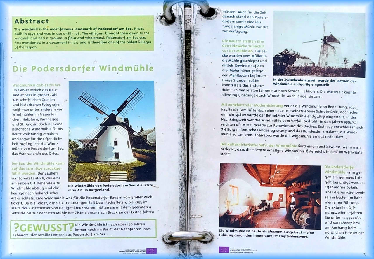 Die Windmühle in Podersdorf am See ist die letzte ihrer Art im Burgenland . |